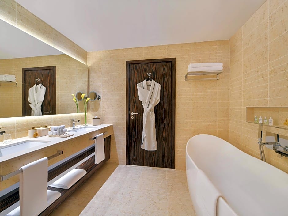 Preparati a coccolarti con una miriade di servizi! Tuffati nella piscina all'aperto, rilassati sulla terrazza solarium o concediti una giornata di spa rigenerante. Le famiglie adoreranno il club per bambini gratuito (sì, puoi finalmente rilassarti!), e le opzioni di ristorazione sono superbe con un fantastico ristorante in loco che serve piatti deliziosi. Per coloro che amano rimanere attivi, il centro fitness e il campo da golf (per un po' di divertimento extra) ti aspettano. Puoi anche goderti il servizio in camera 24 ore su 24 o sorseggiare cocktail al vivace bar mentre ti immergi nell'atmosfera vibrante.
